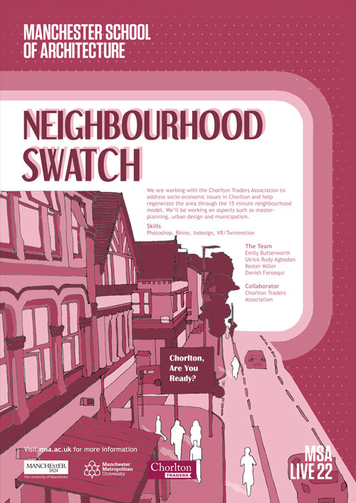 Every year, students from Manchester School of Architecture work with local groups on projects to create social impact. We were delighted to see their amazing work at a showcase event in Chorlton Library in May. MSA Live Showcase </h2 > Neighbourhood Swatch The Neighbourhood Swatch team (pictured above) worked on the idea of 15-minute […]